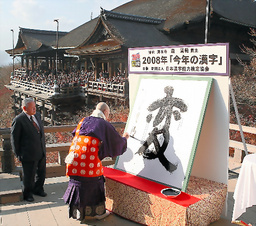 毎年末に発表される「今年の漢字」について、主催する日本漢字能力検定協会(京都市下京区、鬼追(きおい)明夫理事長)が今年も、清水寺(同市東山区)で発表式典を開く方針を決めた。前協会理事長らが逮捕・起訴された背任事件で存続が危ぶまれていたが、協会側が人事刷新や経営改善を進めたことを踏まえ、同寺は「協会は過去と決別し、生まれ変わろうとしている」(大西真興(しんこう)執事長)として引き続き協力する。  「今年の漢字」は、漢検協会が漢字の奥深さを知ってもらおうと95年に開始。毎年11〜12月にその年を代表する漢字を公募し、最も投票が多かった漢字を選ぶ。清水寺で森清範(せいはん)貫主が大きな筆を使って書き上げる発表式典が年末の恒例となっていた。  しかし今年1月以降、大久保昇・前理事長らによる協会資産の私的流用が発覚。森貫主も協会の理事職を5月に辞任し、清水寺は「協会運営の透明化が必要」として「今年の漢字」への協力を見直す姿勢を示していた。